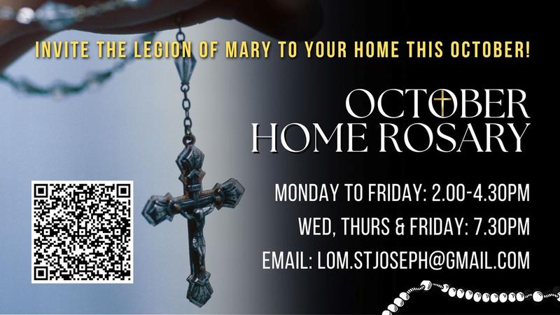 October is the month of the rosary! Please invite the Legion of Mary to facilitate a rosary session in your home for your family and friends on weekday afternoons and evenings throughout this month.