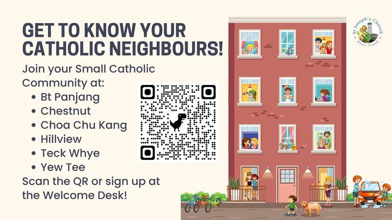 Come and get to know your fellow parishioners and Catholic neighbours! Join the Small Catholic Community for your neighbourhood here: https://tinyurl.com/SJCBTSCC